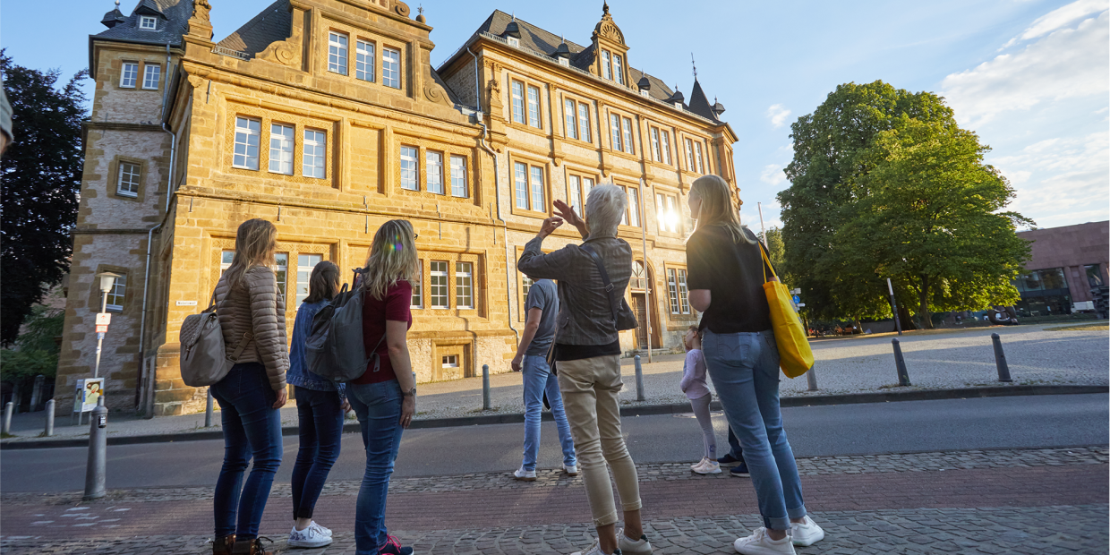 Zu Fuß auf den Spuren der mehr als 800-jährigen Bielefelder Stadtgeschichte. Die Führung startet am Alten Rathaus, einem prächtigen Bau im Stil der Weserrenaissance. Besichtigt werden unter anderem der Alte Markt mit seinen liebevoll restaurierten Patrizierhäusern, die Altstädter Nicolaikirche mit ihrem kostbarem Schnitzaltar sowie die Kunsthalle zusammen mit dem "Kunstzweieck“ – bestehend aus dem Kunstverein Bielefeld und Kunsthalle Bielefeld. Die Führung endet in der Nähe der Kunsthalle.