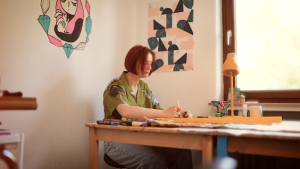 Ihre Motive findet die Künstlerin in Gesprächen mit Freunden und deren Assoziationen zu Bielefeld. Dabei lande die Sparrenburg immer auf Platz eins, gefolgt von Wald und Natur. Deshalb sind auf ihren Bildern an den Stelen der Bahnhofstraße nun Blätter und Walderdbeeren zu sehen. Die Diversität der Stadt transportiert Marla durch viele unterschiedliche Figuren.