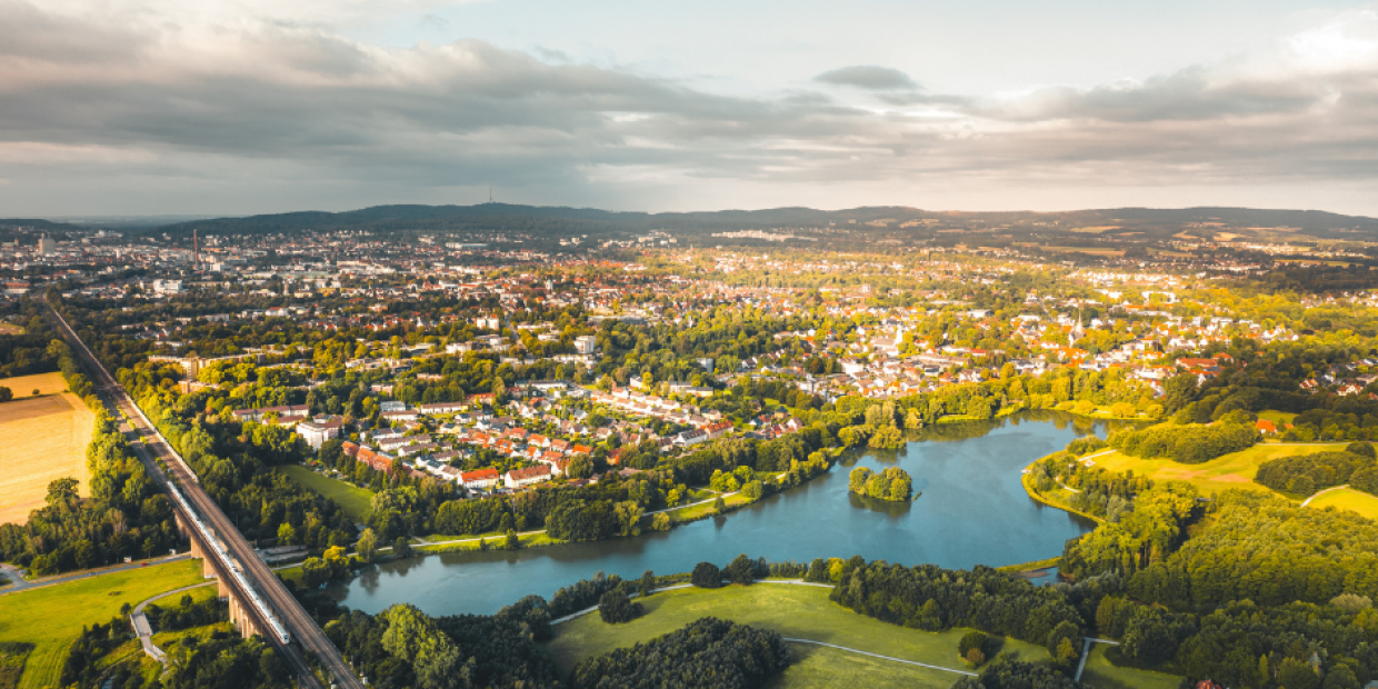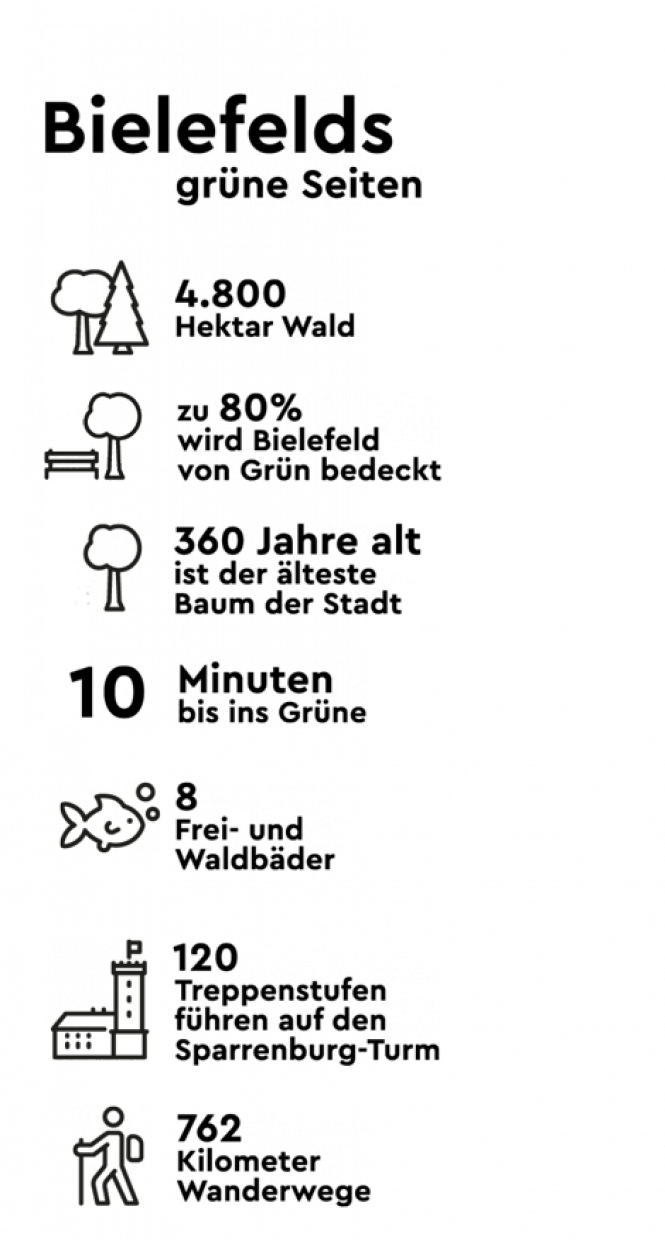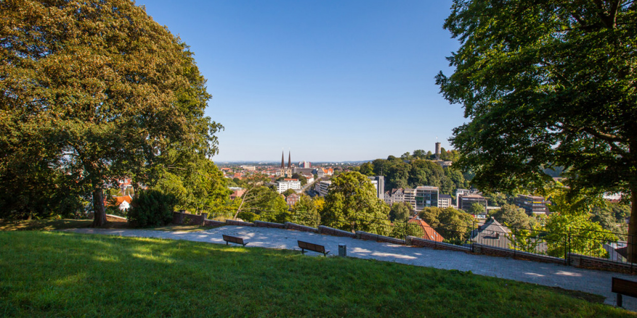 Pauschal gilt in der Stadt am Teuto: Das beliebte Stadtgrün ist in maximal zehn Minuten fußläufig von überall aus erreichbar. Das liegt unter anderem daran, dass der berühmte Teutoburger Wald, der als eines der schönsten Mittelgebirge Deutschlands gilt, mitten durch Stadtgebiet verläuft.