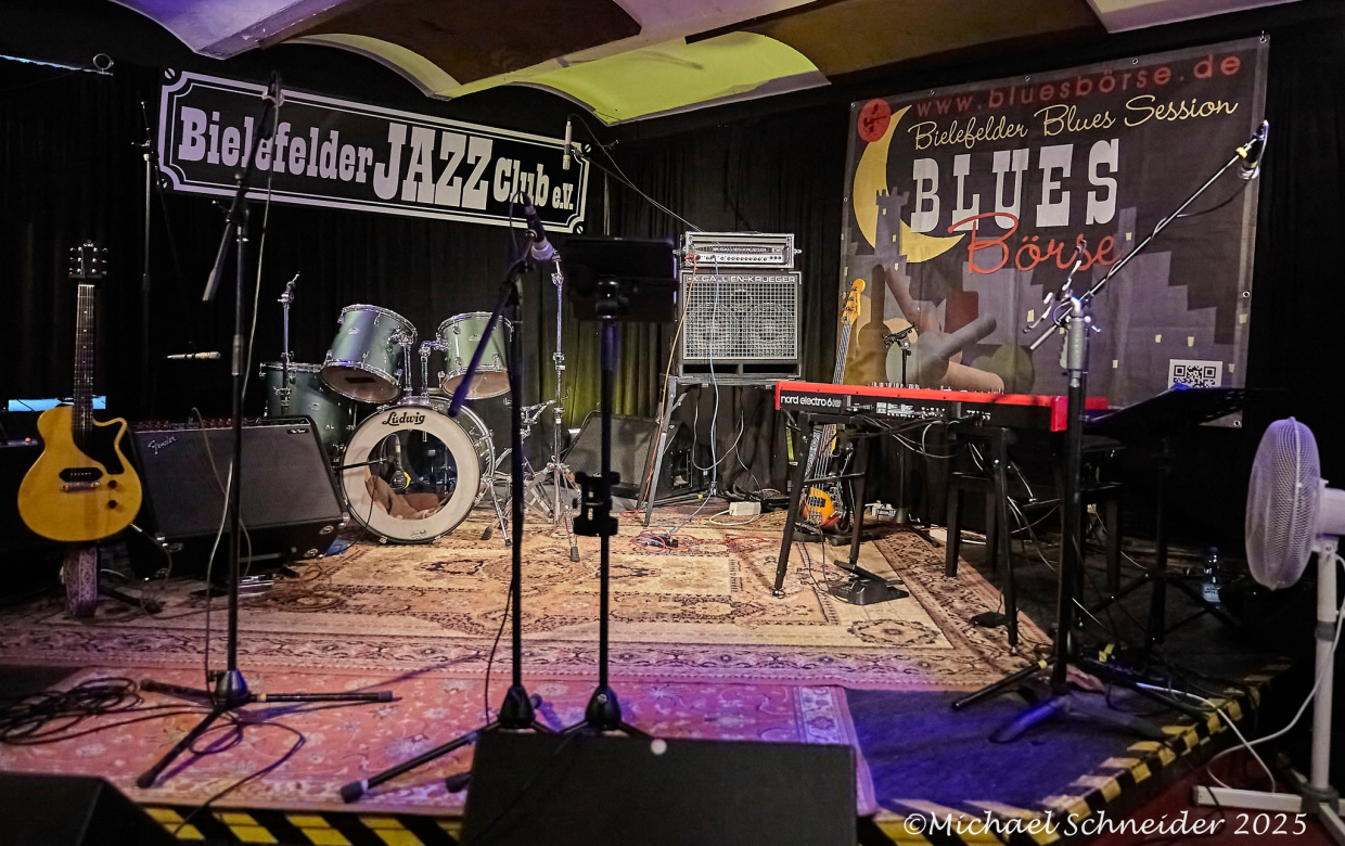 Die BluesBörse ist eine offene Bluessession. Es stehen mehrere Amps (Gitarre, Bass), Keyboard, Drums zur Verfügung. Man braucht nur das eigene Instrument mitbringen.