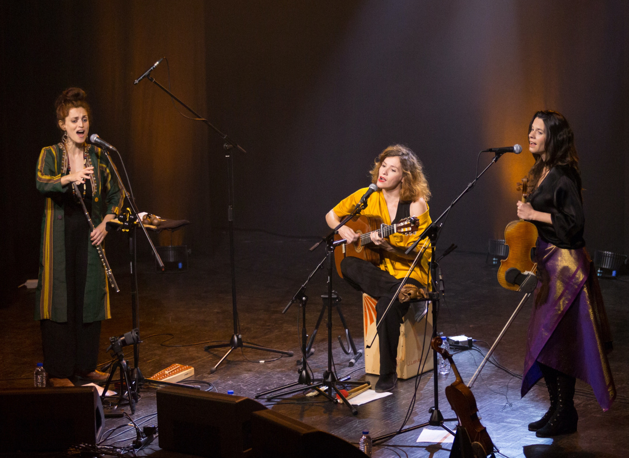 Elena La Conte: Querflöte, Gesang, Asalato | Mili Vizcaíno Jaén: Gesang, Gitarre, Perkussion | Kristina van de Sand: Violine, Viola, Gesang, Perkussion