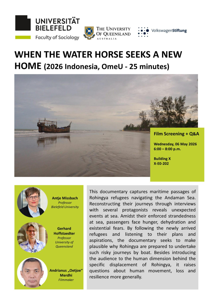 Der Filmemacher Andrianus „Oetjoe“ Merdhi stellt seinen Dokumentarfilm „When the Water Horse Seeks a New Home“ als Programmteil des Workshops: „Thinking about refugees through the sea“ (06.-08.05.2026) am 06.05.2026 an der Universität Bielefeld vor.