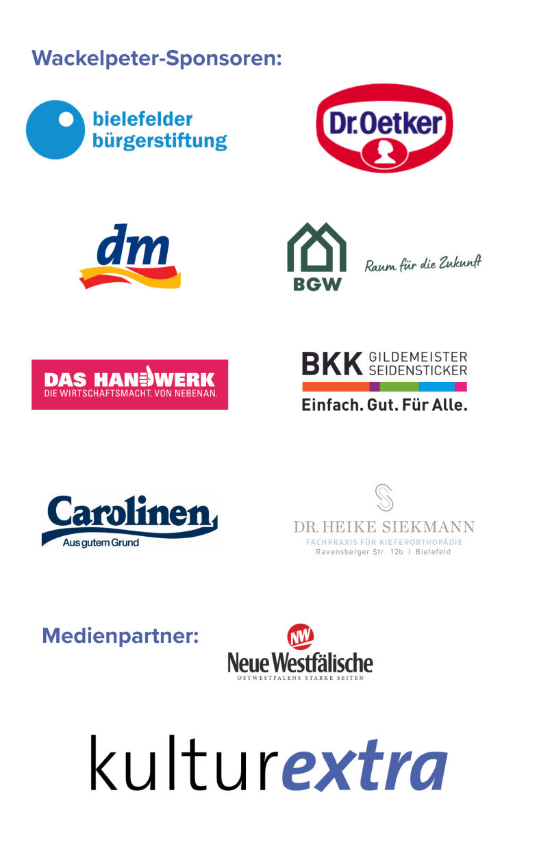 Am letzten Ferienwochenende der Sommerferien lädt der Wackelpeter zum weit und breit größten eintägigen Kinder- und Familienkulturfest unter freiem Himmel ein. Internationale und Bielefelder Künstler:innen faszinieren mit Akrobatik, Walk-Acts, Live-Musik und Theaterbühnen. Wir als Kulturamt stellen zusammen mit Radio Bielefeld jedes Jahr ein umfangreiches und spannendes Kulturprogramm für die ganze Familie auf die Beine. Überall im Park gibt es etwas zum Mitmachen, (Be-)Staunen und Genießen und bei freiem Eintritt können alle Familien einen unbeschwerten, glücklichen Tag erleben. Freut euch gemeinsam mit uns und Radio Bielefeld auf den 30. August 2026!