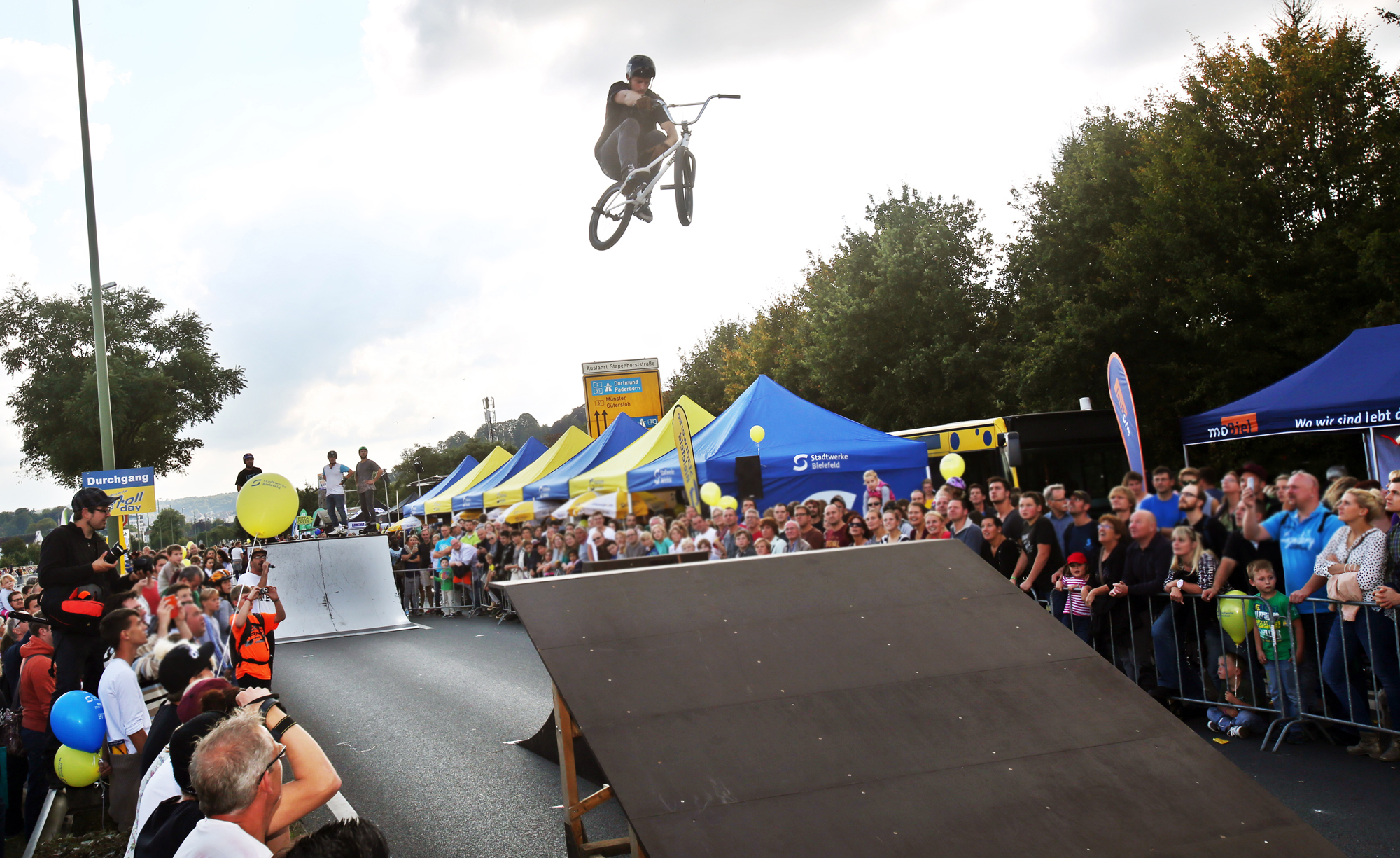 Auf dem Ostwestfalendamm übernehmen dann die Sportler das Sagen: Der Lauf-Klassiker „Stadtwerke OWD Cup“ über zehn Kilometer steht auf dem Programm. Schulen aus Bielefeld und der Region messen sich beim „moBiel Schülerlauf“. Viel Teamgeist und witzige Kostüme gibt es beim „BITel Team-Running“ zu erleben. Beim „BBF Bambini-Lauf“ gehen die jüngsten Sportler von drei bis sechs Jahren auf die Piste.