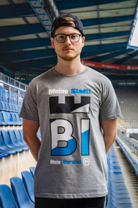 Auf dem T-Shirt ist das Arminia-BIE-Logo eingerahmt von der gemeinsamen Botschaft: „Meine Stadt! Mein Verein!“ Unter diesem Motto planen Bielefeld Marketing und Arminia Bielefeld auch eine erste gemeinsame Fan-Artikel-Serie.