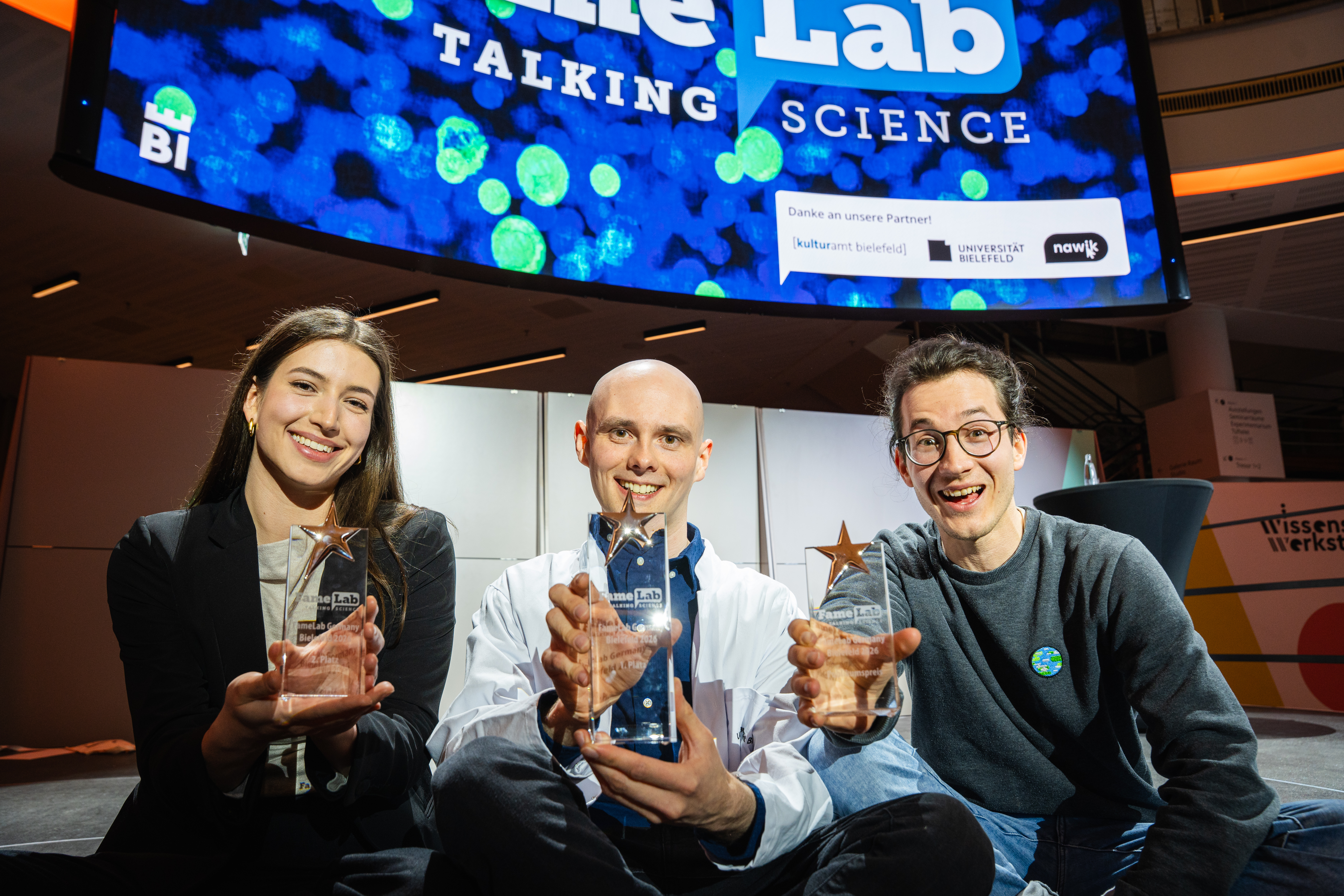 Mit ihren Platzierungen haben sich Maik Gärner und Emily Hantsche für das Deutschland-Finale von FameLab Germany qualifiziert. Dieses organisiert die Wissenswerkstadt am 1. Juli 2026 in der Rudolf-Oetker-Halle in Bielefeld. Das Finale zählt zu den größten FameLab-Wettbewerben weltweit. Tickets gibt es unter: www.famelab-germany.de