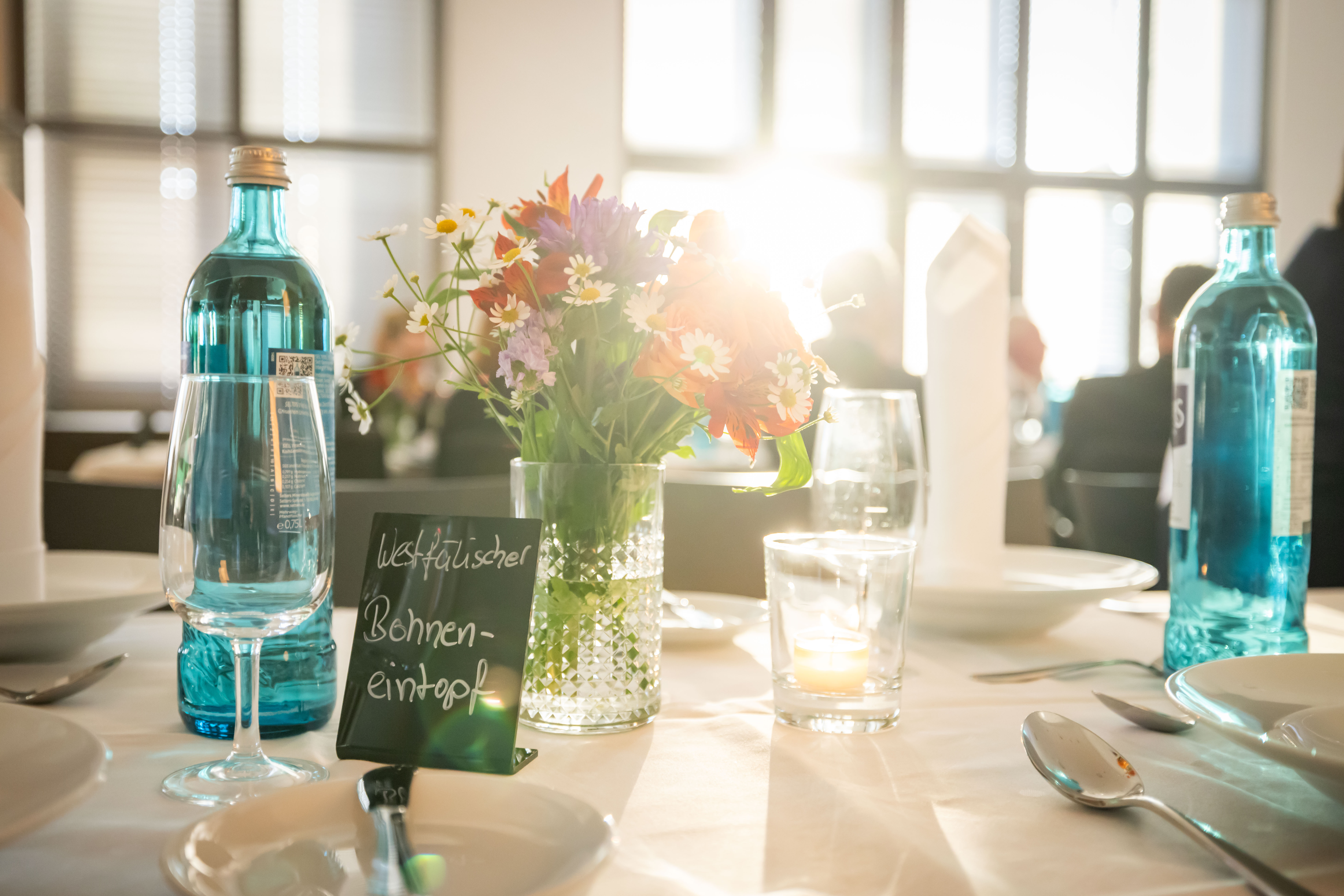 Nach dem Vortrag gab es ganz nach alter Tradition herzhafte Bohnensuppe, eine vegetarische Alternative, Rote Grütze, Bier, Wein und spannende Gespräche. Für diesen Abend werden keine Eintrittsgelder erhoben, sondern Spenden für einen guten Zweck gesammelt. Dieses Mal kommt der Erlös auf Wunsch des Referenten dem Mädchenhaus Bielefeld e.V. zugute. Das Mädchenhaus Bielefeld bietet Mädchen und jungen Frauen mit und ohne Behinderung, die sich in einer schwierigen oder bedrohlichen Lebenslage befinden, adäquate Hilfsangebote an.