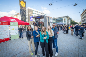 Am 2. September 2023, gegen 17.30 Uhr, war es so weit: Auf dem Bielefelder Jahnplatz wurde tu:bie feierlich enthüllt. Mit dem neuen mobilen Erlebnisraum für die Innenstadt möchte die Bielefeld Marketing GmbH langfristig für neue Besuchsanlässe in der City sorgen. Von Live-Musik und DJ-Sessions über Streetfood bis zu Lesungen und Kinderschminken – der variable Veranstaltungsraum auf Rädern ermöglicht unterschiedlichste City-Erlebnisse, die die Bielefelder Innenstadt noch attraktiver machen. Das tu:bie-Mobil entstand als eine Gemeinschaftsleistung des Bielefelder Stadtmarketings und zahlreicher Unternehmen und Institutionen, die sich im Rahmen der Bielefeld-Partnerschaft für die Stadtmarke und das Image unserer Stadt engagieren.