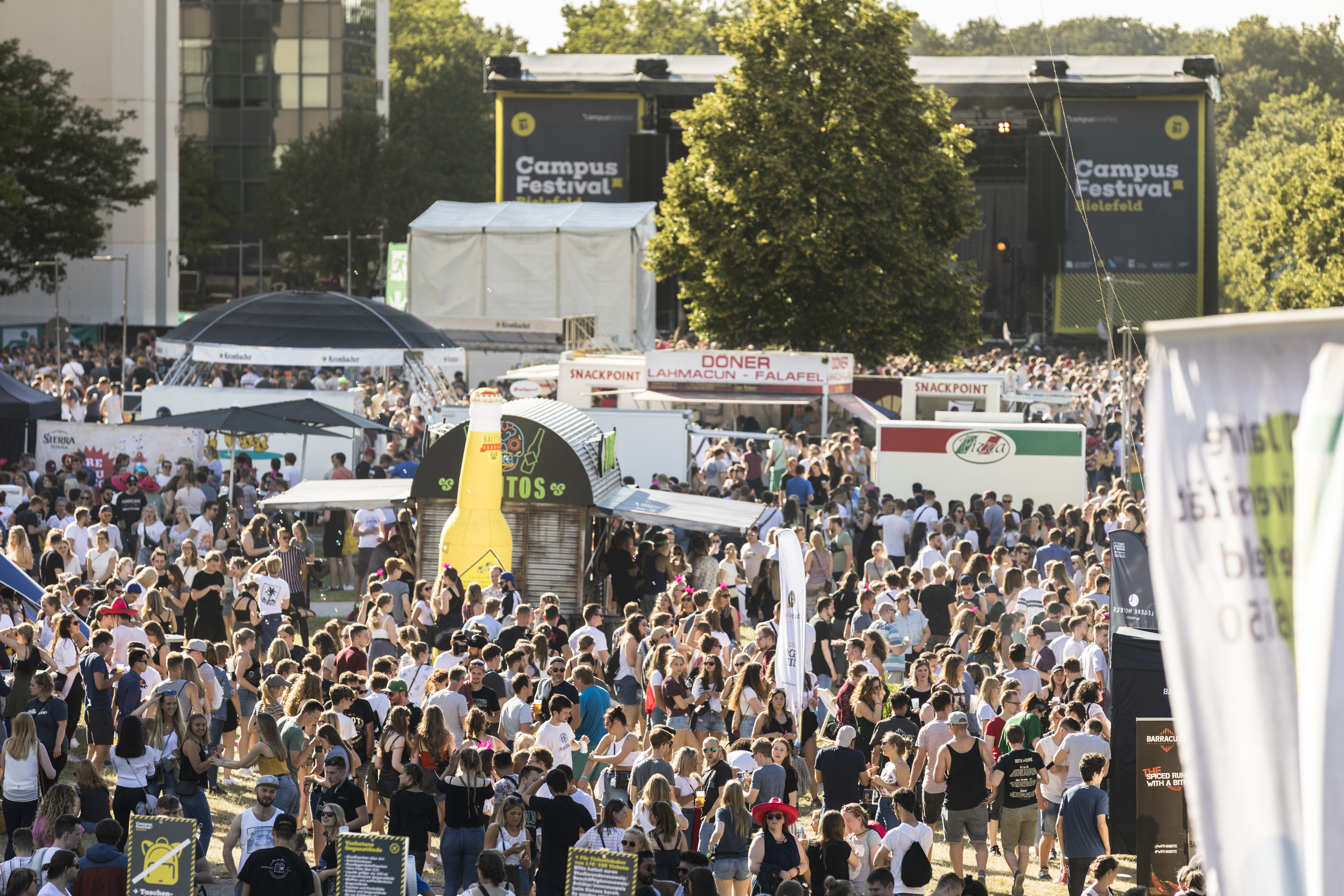 Am 16. Juni steigt nach zwei Jahren pandemiebedingter Zwangspause endlich wieder das Campus Festival Bielefeld. Das Open-Air-Festival gilt als größte Campus-Party der Republik und verwandelt den Campus Bielefeld nun schon zum sechsten Mal für einen Tag in den heißesten Tanzboden der Stadt. Wie zuletzt im Jahr 2019 werden mehr als 25 namhafte Music-Acts, Newcomer-Bands, DJs und regionale Musikerinnen und Musiker für ein abwechslungsreiches Programm sorgen.
