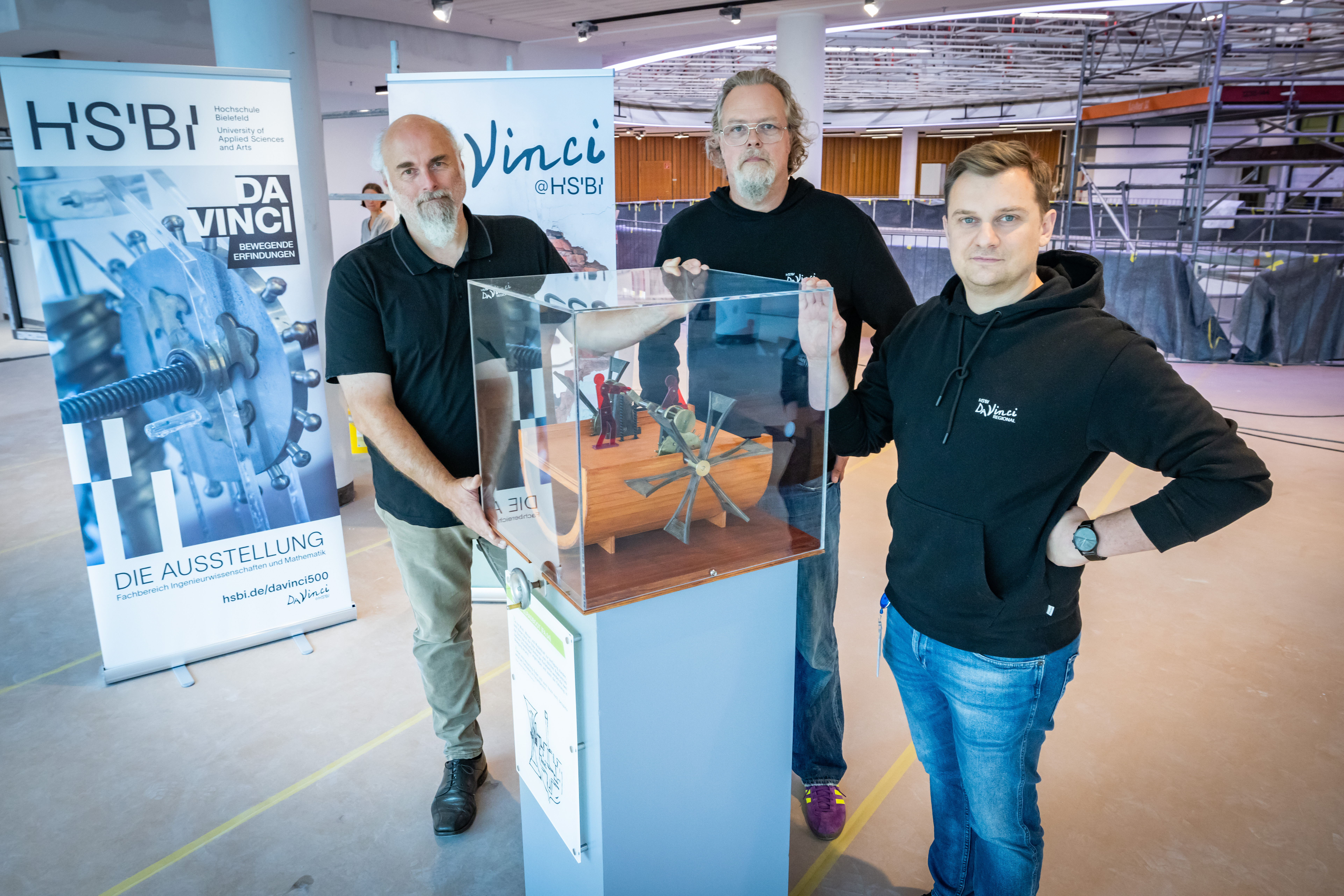 Durch die studentischen Projektarbeiten ist eine große Sammlung von Exponaten entstanden, mit denen der Fachbereich seit 2004 erfolgreich durch Museen in Deutschland und Europa tourt. Jetzt bekommt das Projekt mit „DaVinci@HSBI“ eine feste Ausstellungsfläche in der Bielefelder Innenstadt. Digitale Inhalte, zum Beispiel Virtual-Reality- und Augmented-Reality-Angebote, runden die Ausstellung ab. Neben der 120 Quadratmeter großen Ausstellungsfläche bezieht die Hochschule auch eine Werkstatt für Studierende im Untergeschoss.