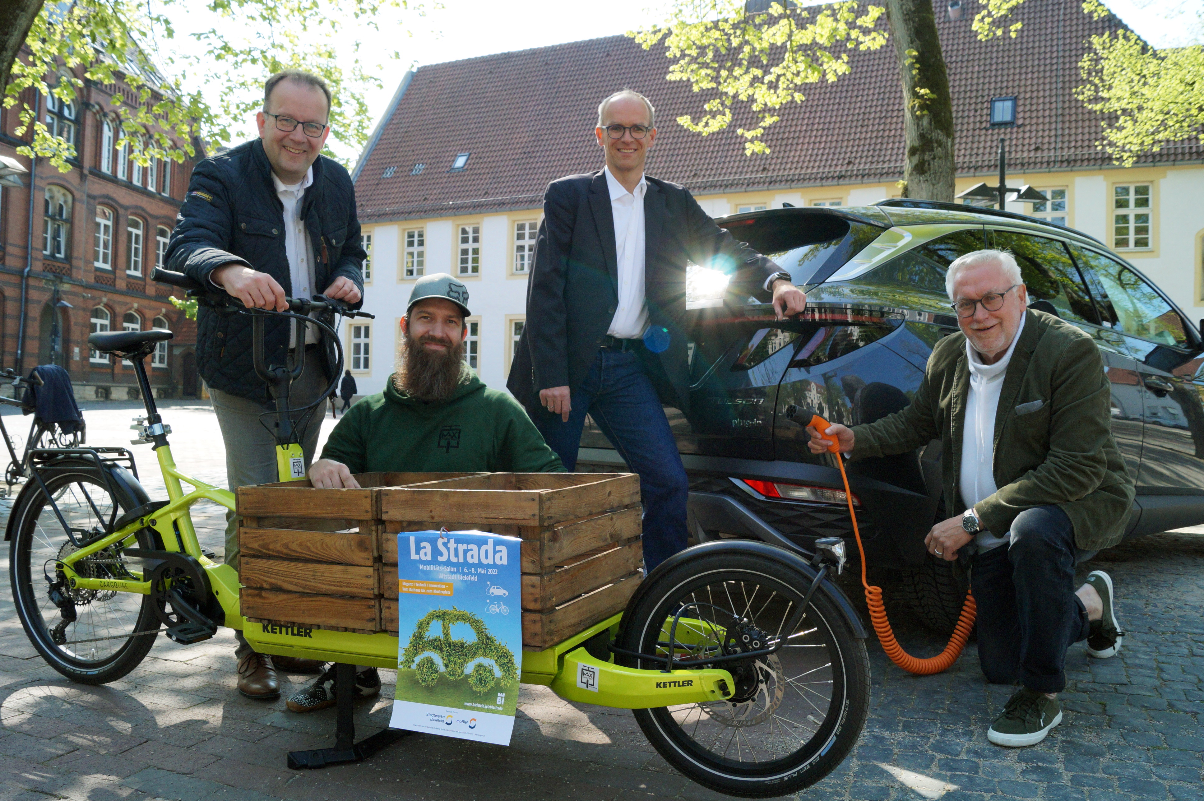 „Zum ersten Mal seit Bestehen von La Strada haben die meisten der gezeigten Fahrzeuge keinen Verbrennungsmotor“, sagt Martin Knabenreich, Geschäftsführer von Bielefeld Marketing. „Alternative Angebote sind in der Mitte der Gesellschaft angekommen, so dass wir auch mit der La Strada 2022 Weichen für neue Mobilität stellen wollen“, ergänzt Ralf Eigenrauch, Geschäftsführer von Eigenrauch & Partner. Vom Rathaus bis zum Klosterplatz setzen alternative Antriebe sowie Sharing-Angebote die Themen beim Open-Air-Event in der Bielefelder Altstadt.