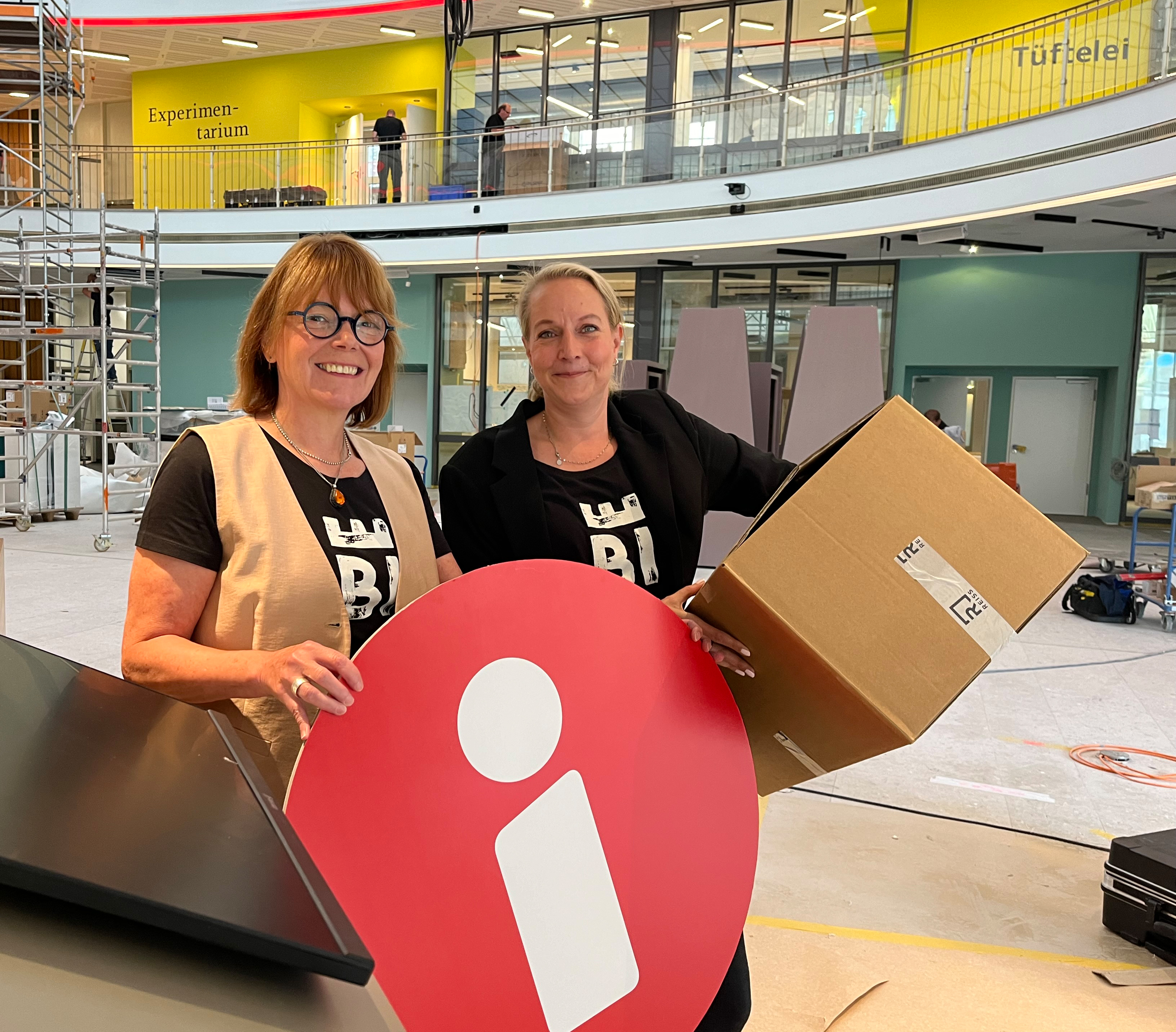 Auch wenn der Umzug in die Wissenswerkstadt zunächst viel Arbeit bedeutet, freuen sich Gabriela Lamm (l.) und Ragna Große aus der Tourist-Information schon auf die neuen, modernen Räume.