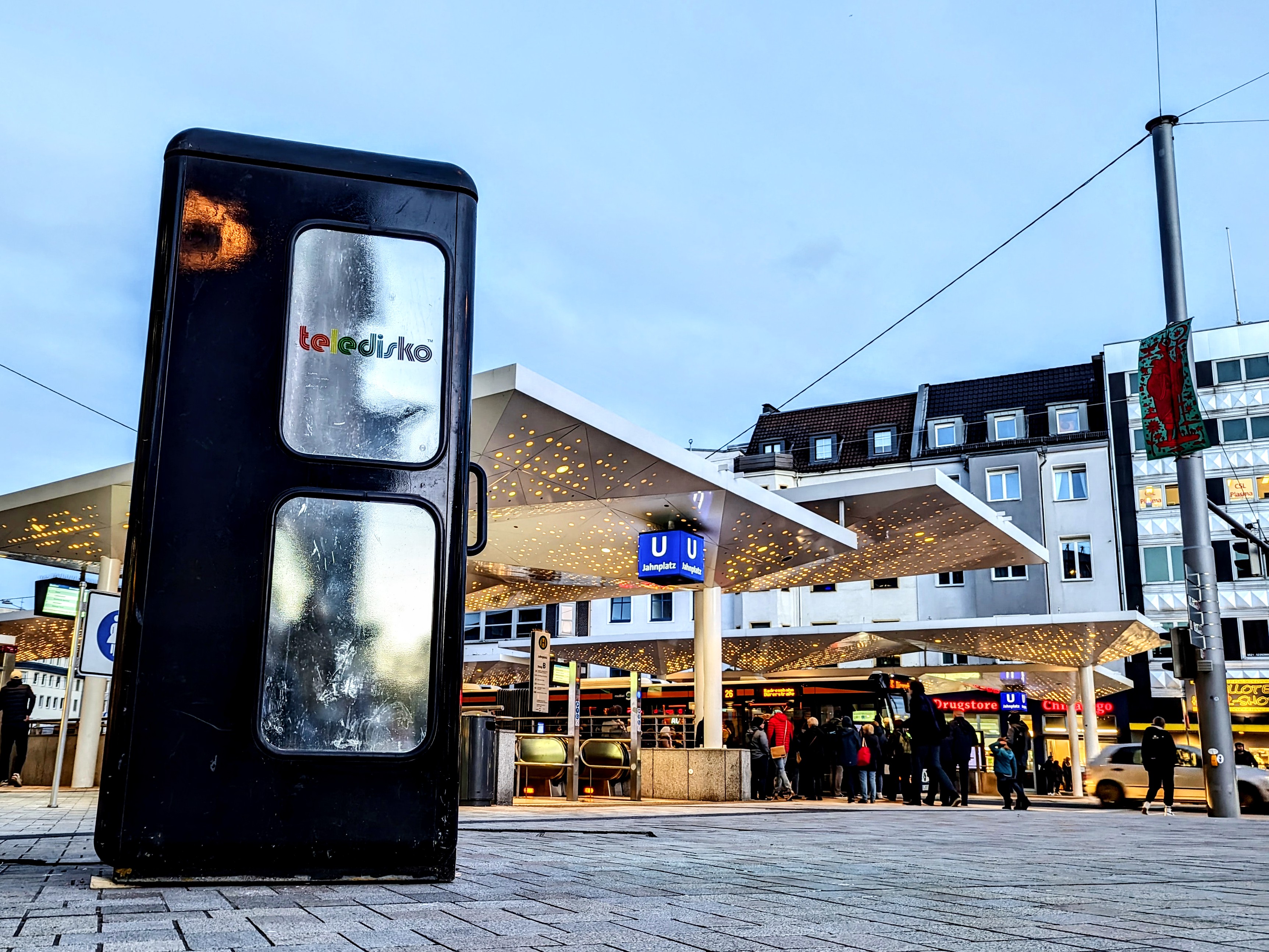 Reingehen, Lied auswählen, abtanzen und dabei ein Foto machen! Im November machte die Teledisko aus Berlin Station auf dem Jahnplatz.
