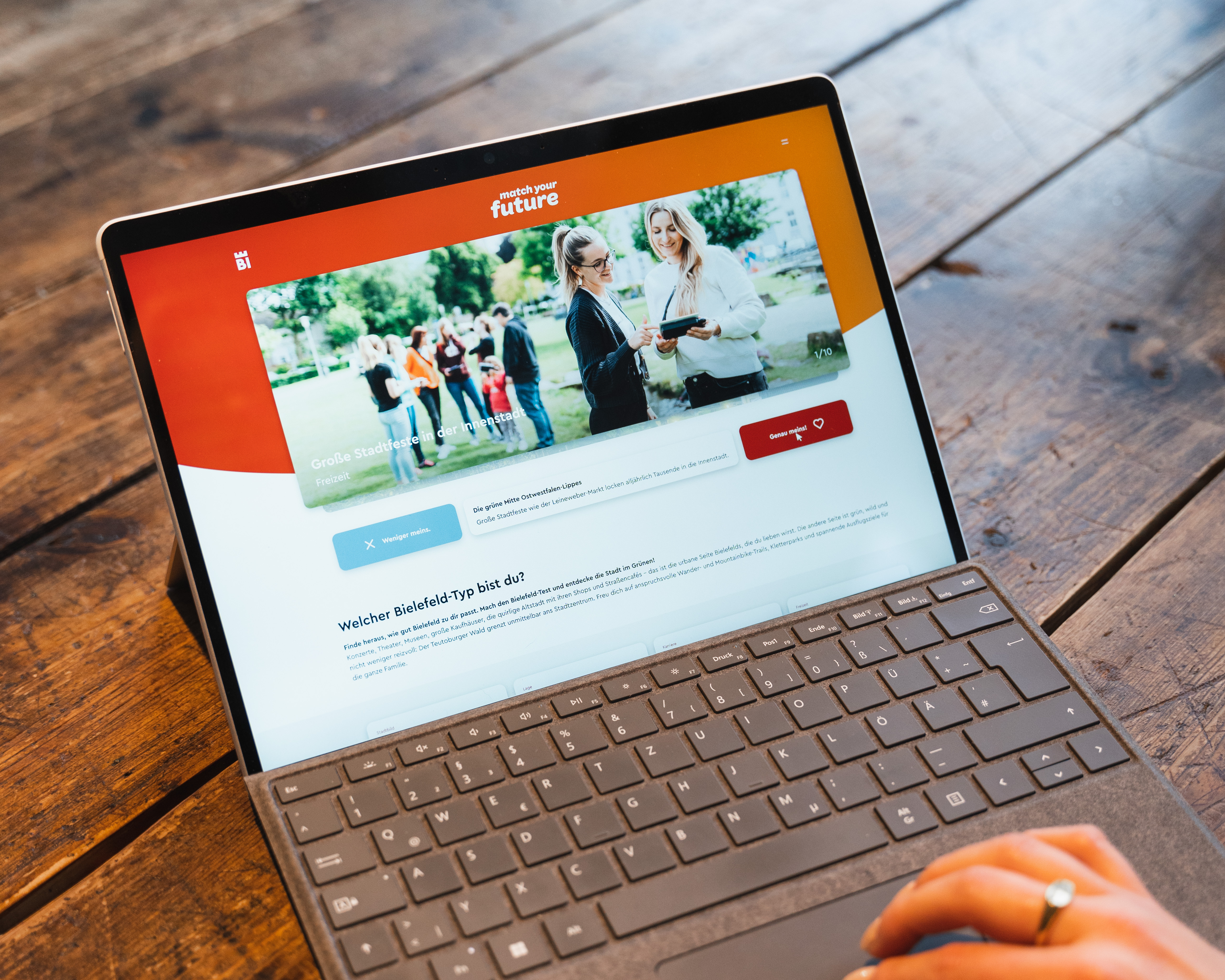 Am 12. Mai 2023 startet die Bielefeld Marketing GmbH eine Imagekampagne, die gezielt potenzielle Fachkräfte im Umkreis von 150 bis 200 Kilometern um Bielefeld herum anspricht. Im Zentrum der Kampagne „match your future“ steht eine spielerische Website, die direkt auf die Karriere-Websites Bielefelder Unternehmen verlinkt.