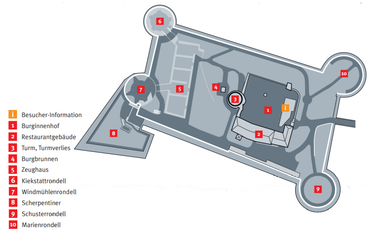 | Kasematten-Führung | 9 € (+ 0,50 € Online-Gebühr) Erwachsene |